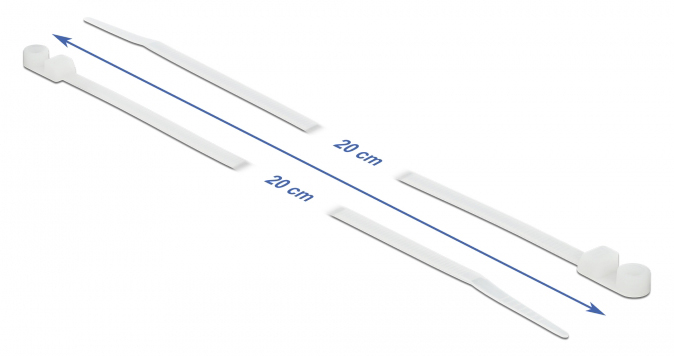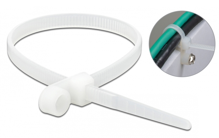 DELOCK Δεματικά καλωδίων 18945 με οπή στερέωσης, 200x4.8mm, λευκά, 10τμχ