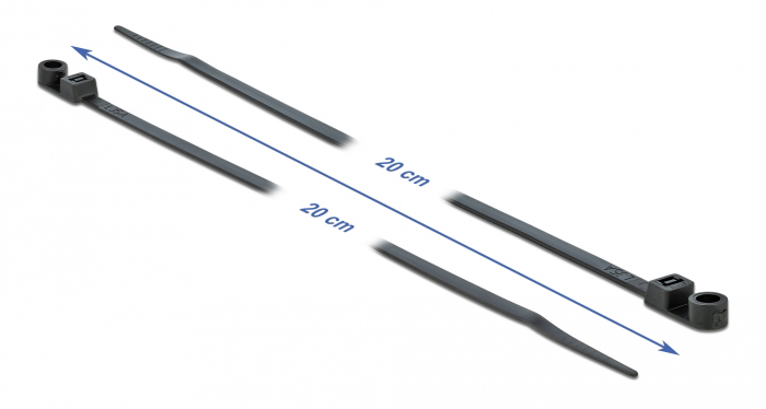 DELOCK Δεματικά καλωδίων 18950 με οπή στερέωσης, 200x4.8mm, μαύρα, 10τμχ
