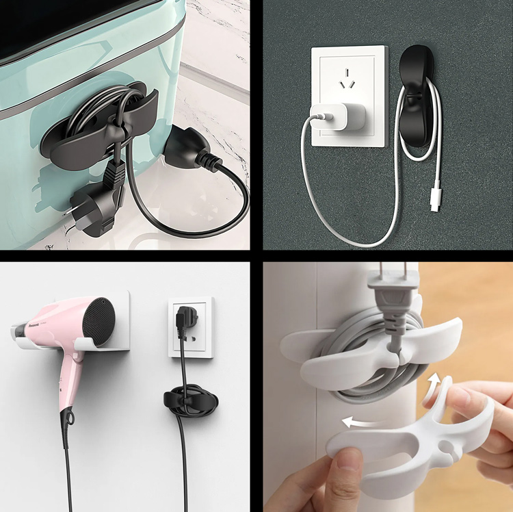 Οργανωτής καλωδίων σιλικόνης κατάλληλος για την εύκολη τακτοποίηση του καλωδίου τροφοδοσίας ηλεκτρικών συσκευών. Η τοποθέτηση του γίνεται σε οποιαδήποτε επίπεδη επιφάνεια του τοίχου ή της συσκευής με αυτοκόλλητο.