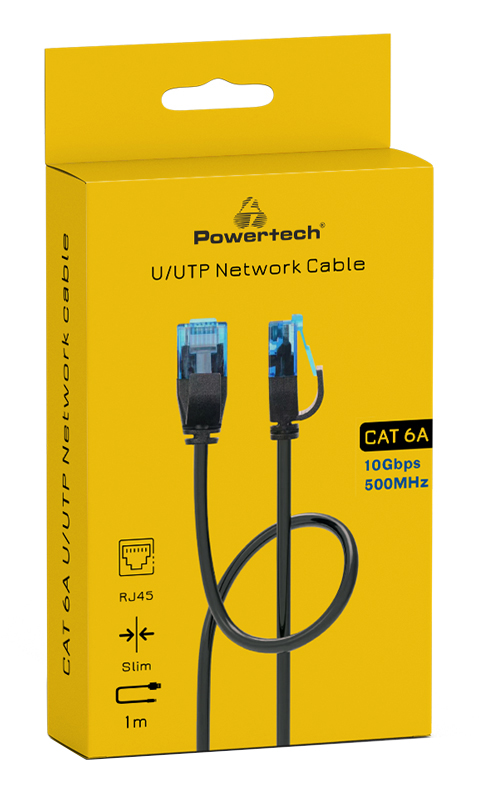 POWERTECH καλώδιο δικτύου PTR-0142 Cat 6a U/UTP, copper, slim, 1m, μαύρο