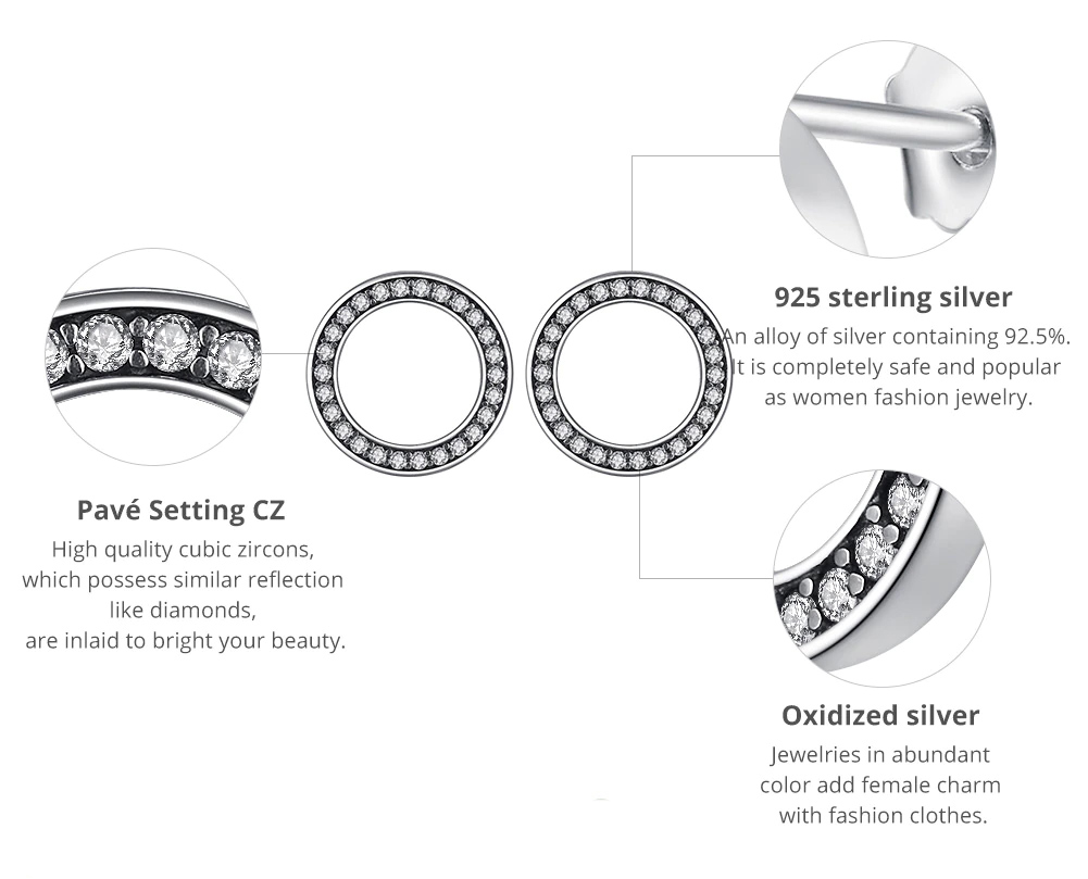 Καρφωτά σκουλαρίκια Bamoer σε γεωμετρικό σχέδιο κύκλου, κατασκευασμένα από ασήμι 925 και διακοσμημένα με αστραφτερή κυβική ζιρκόνια, λευκού χρώματος.