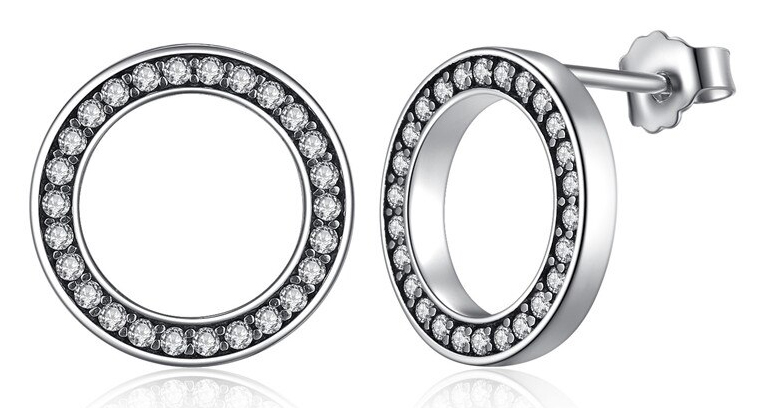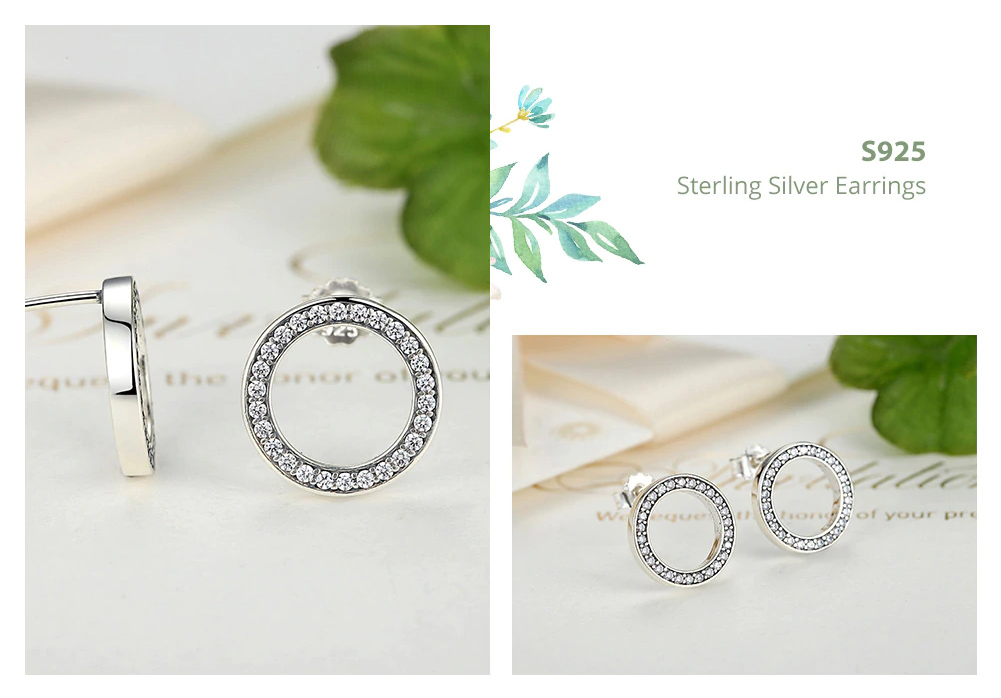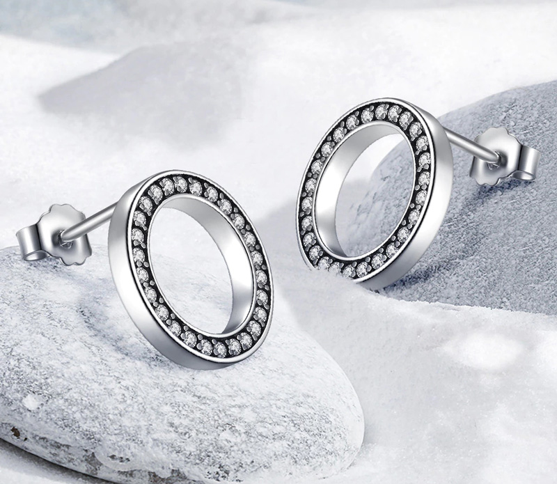 Καρφωτά σκουλαρίκια Bamoer σε γεωμετρικό σχέδιο κύκλου, κατασκευασμένα από ασήμι 925 και διακοσμημένα με αστραφτερή...