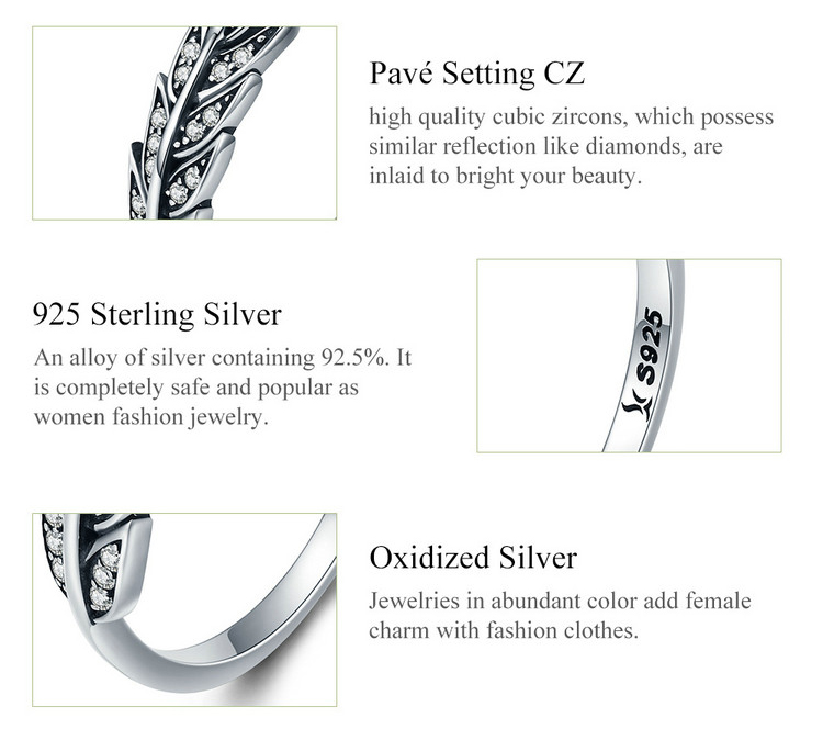 Κομψό δαχτυλίδι σε σχέδιο φτερού, διακοσμημένο με αστραφτερή κυβική ζιρκόνια, λευκού χρώματος, η οποία προσφέρει μοναδική λάμψη στο κόσμημα.