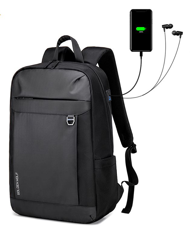 GOLDEN WOLF τσάντα πλάτης GB00400-BK, με θήκη laptop 15.6", μαύρη