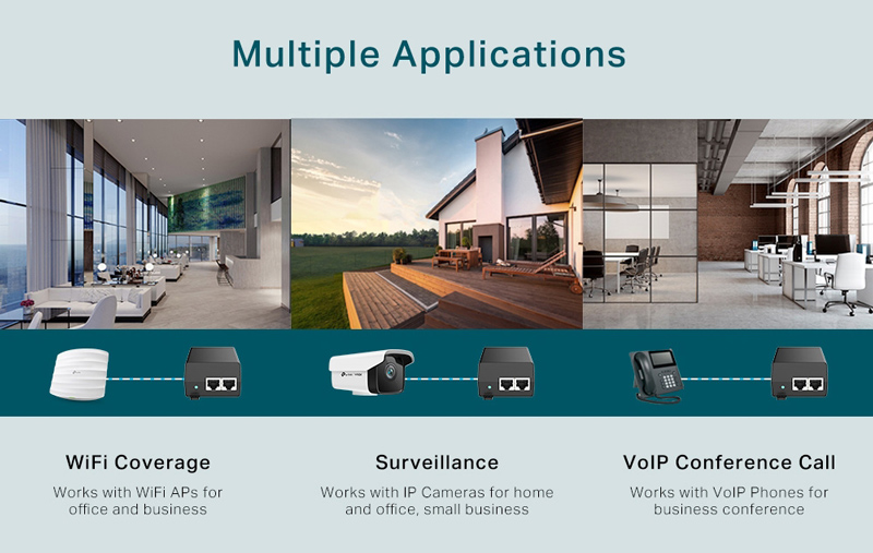 Basic Function: Auto-Sensing Algorithm enables providing power with 802.3af/at PD, Auto-determine the necessary power requirements, Wall-mounting and desktop installation supported, Plug-and-Play