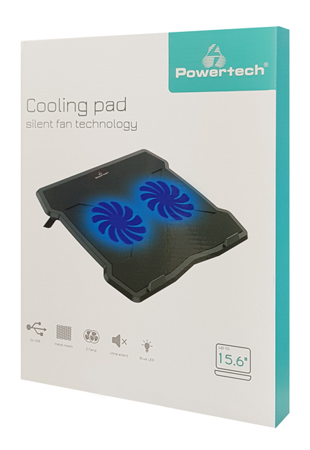 POWERTECH Βάση & ψύξη laptop PT-930, έως 15.6", 2x 125mm fan, LED, μαύρο