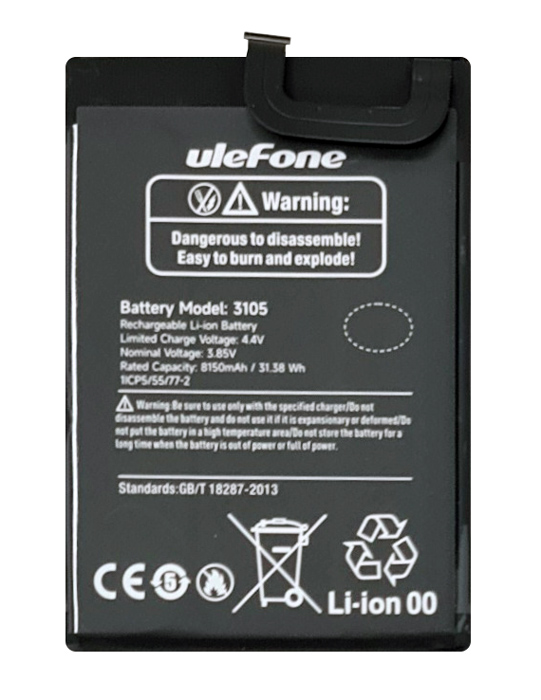 Επαναφορτιζόμενη μπαταρία λιθίου για το smartphone Armor X11 Pro της Ulefone.