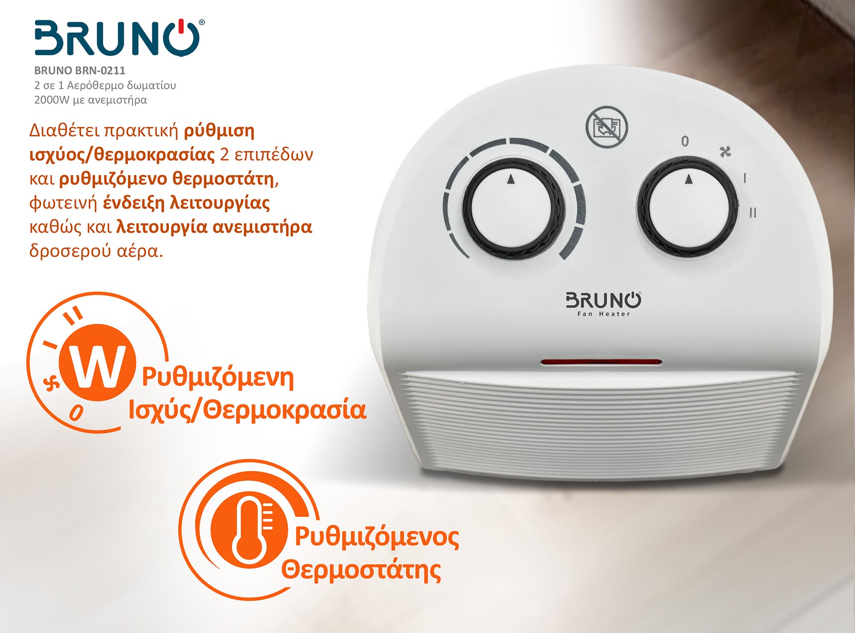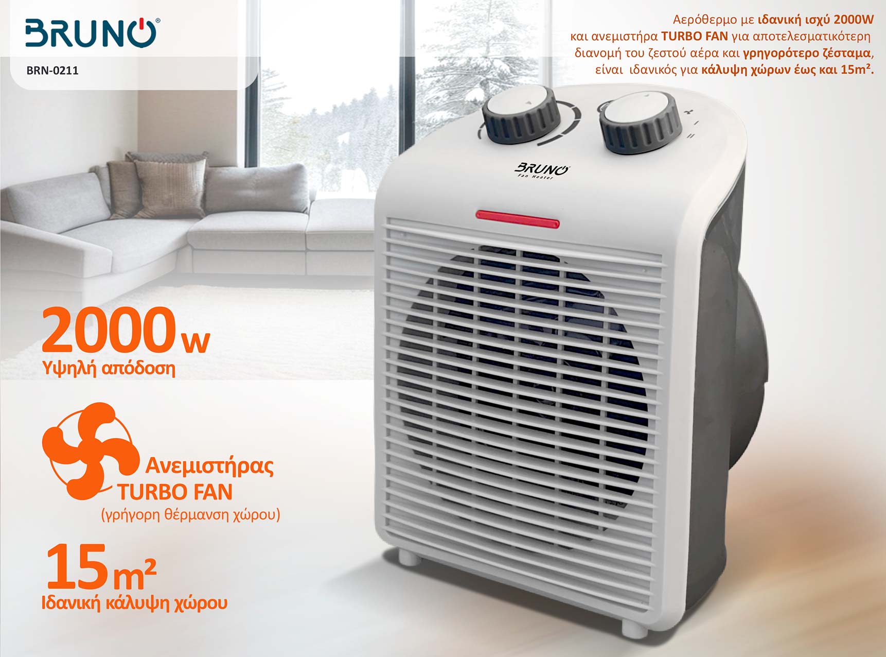 BRUNO 2 σε 1 αερόθερμο δωματίου BRN-0211, 2000W, με ανεμιστήρα, λευκό