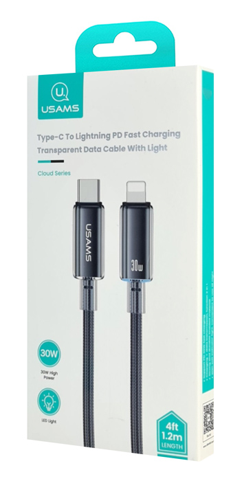 Καλώδιο φόρτισης και μεταφοράς δεδομένων Lightning σε USB-C της Usams. Υποστηρίζει φόρτιση με απόδοση έως 30W και μεταφορά δεδομένων με ταχύτητα έως 480Mbps.