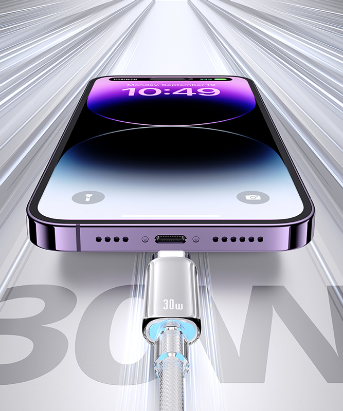 Καλώδιο φόρτισης και μεταφοράς δεδομένων Lightning σε USB-C της Usams. Υποστηρίζει φόρτιση με απόδοση έως 30W και μεταφορά δεδομένων με ταχύτητα έως 480Mbps.