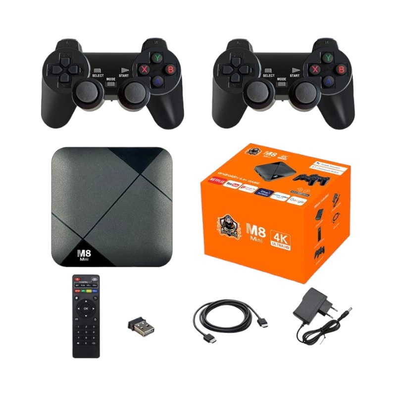 Η κονσόλα + Android TV Box 2σε1 X8 έρχεται για πρώτη φορά στην Ελλάδα με 10000 παιχνίδια! Περιλαμβάνει ασύρματη κονσόλα παιχνιδιών με HDMI Stick και δύο ασύρματα χειριστήρια. Διαθέτει ενσωματωμένα όλα τα κλασσικά παιχνίδια που λάτρεψαν μικροί και μεγάλοι. Aποτελεί παράλληλα και Android TV BOX που θα μετατρέψει την τηλεόρασή σας σε Smart TV με όλες τις εφαρμογές ψυχαγωγίας που χρειάζεστε. Πανεύκολη εγκατάσταση, χωρίς περιττά καλώδια, για ατελείωτη διασκέδαση με όλη την οικογένεια!