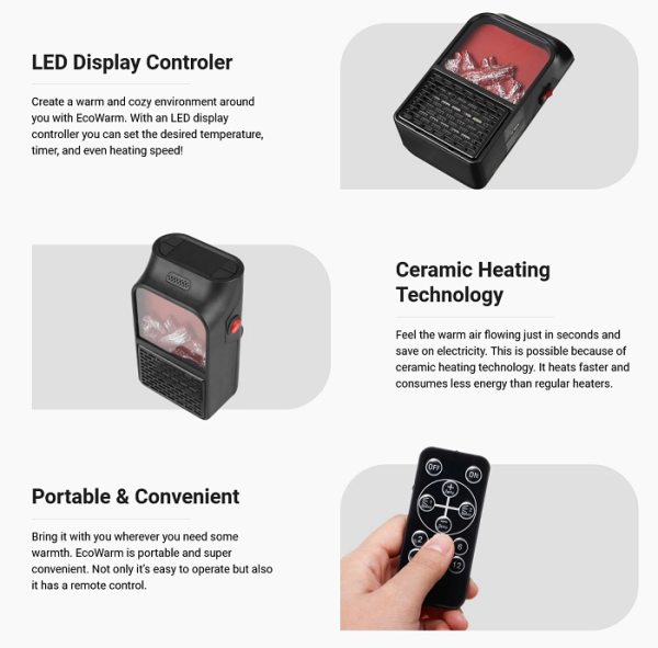 Mini πρακτικό αερόθερμο υψηλής ισχύος και απόδοσης, ιδανικό για οικονομική θέρμανση δωματίου, με εντυπωσιακό εφέ φλόγας τζακιού που θα δημιουργήσει μια υπέροχη ζεστή ατμόσφαιρα στον χώρο σας.