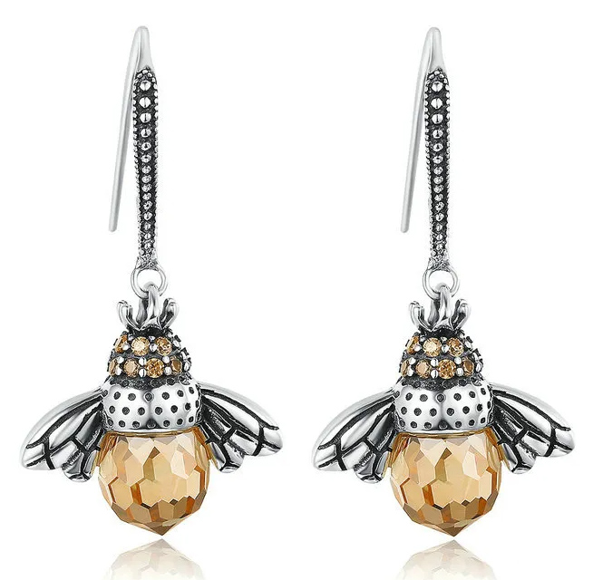 Κομψά, κρεμαστά σκουλαρίκια Bamoer κατασκευασμένα από ασήμι 925, επιπλατινωμένα, σε εντυπωσιακό σχέδιο μέλισσας, διακοσμημένα με κυβική ζιρκόνια.
