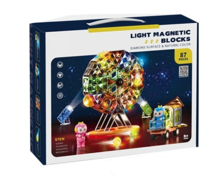 Μαγνητικά δομικά στοιχεία με εφέ φωτισμού, δημιουργώντας μια οπτική απόλαυση στα παιδιά.