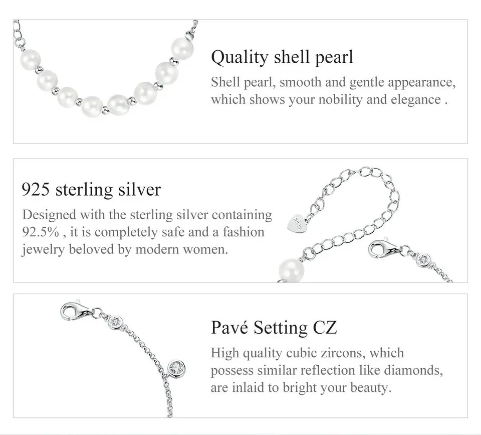 BAMOER βραχιόλι BSB189 με πέρλες & κυβική ζιρκόνια, ασήμι 925, ασημί