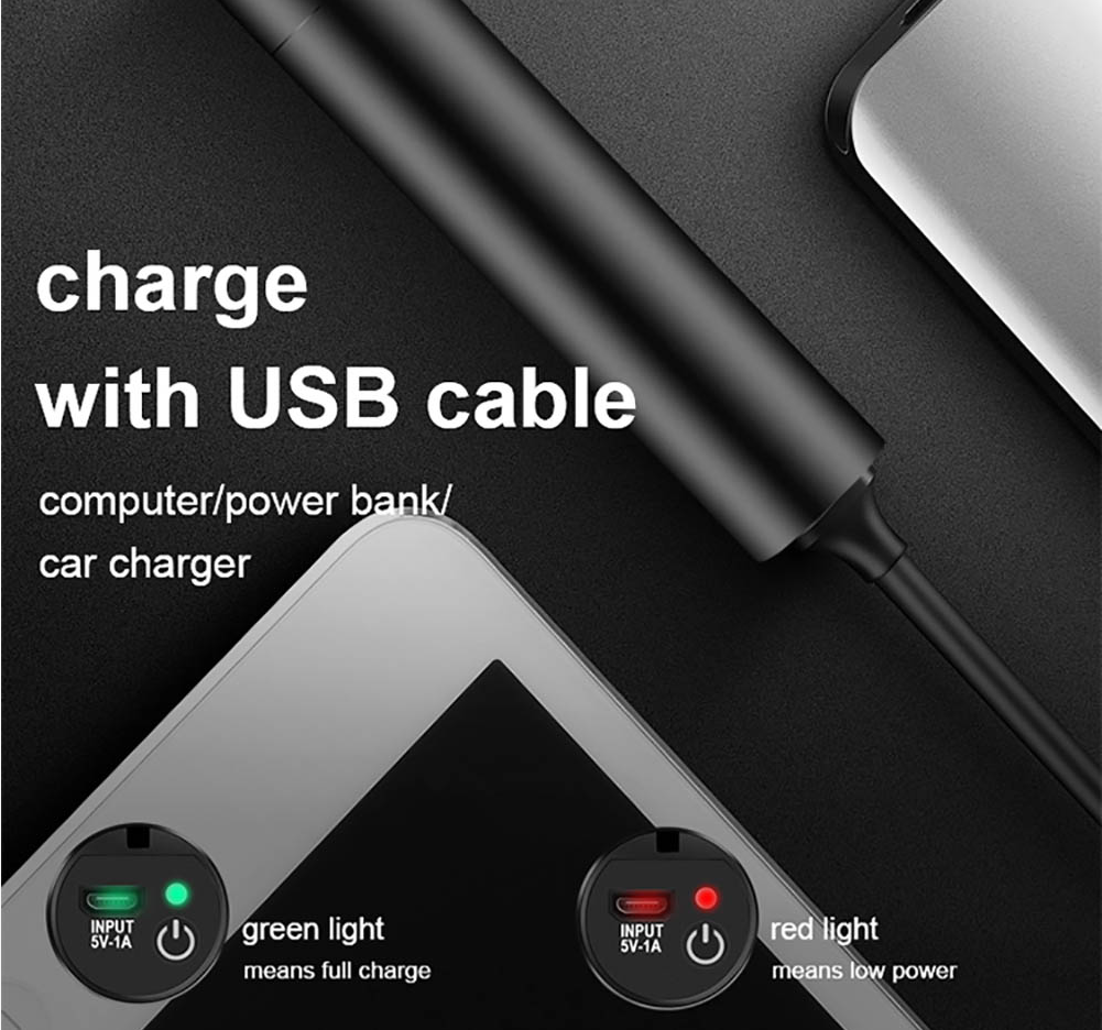 Επαναφορτιζόμενος με μπαταρία Li-ion 18650 / 800 mAh, περίβλημα Alu, ένδειξη πλήρους φόρτισης(πράσινο Led) και χαμηλού επίπεδου μπαταρίας(κόκκινο Led, αν η στάθμη της είναι κάτω του 10%), υποδοχή φόρτισης Micro USB, αντοχή σε βροχή, μικρό μέγεθος ( Φ26mmx126mm) και μικρό βάρος 98gr. Φορτίζεται μέσω USB 5V-1Amp min. Χρησιμοποιεί μαύρο επεξεργασμένο φίλτρο γυαλιού που φιλτράρει τις άλλες φωτεινές ακτινοβολίες.
