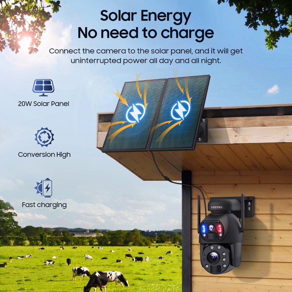 Η smart ηλιακή κάμερα ασφαλείας της SECTEC καταγράφει κάθε κίνηση σε καθαρή, υψηλής ευκρίνειας ανάλυση.