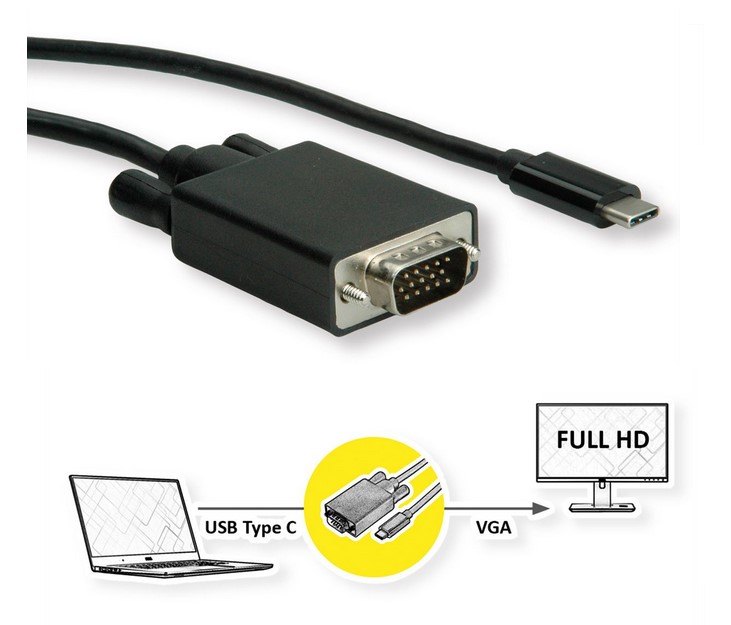 Connect your Macbook, Ultrabook, Notebook/Laptop or PC with USB Type C connector to an HDMI monitor, TV or projector with VGA - with a maximum resolution of 1920x1080 / 1980x1200 @60Hz! USB 3.1 Type C to VGA cable for Macbook, Ultrabook, Notebook/Laptop or PC Connect your device with USB Type C port to any VGA display or projector This cable allows you to mirror or extend the display of your device to any VGA-enabled TV or display Supports maximum resolutions up to 1920 x 1080 @60Hz (Full HD 1080p) Connectors: VGA Female and Type C Male