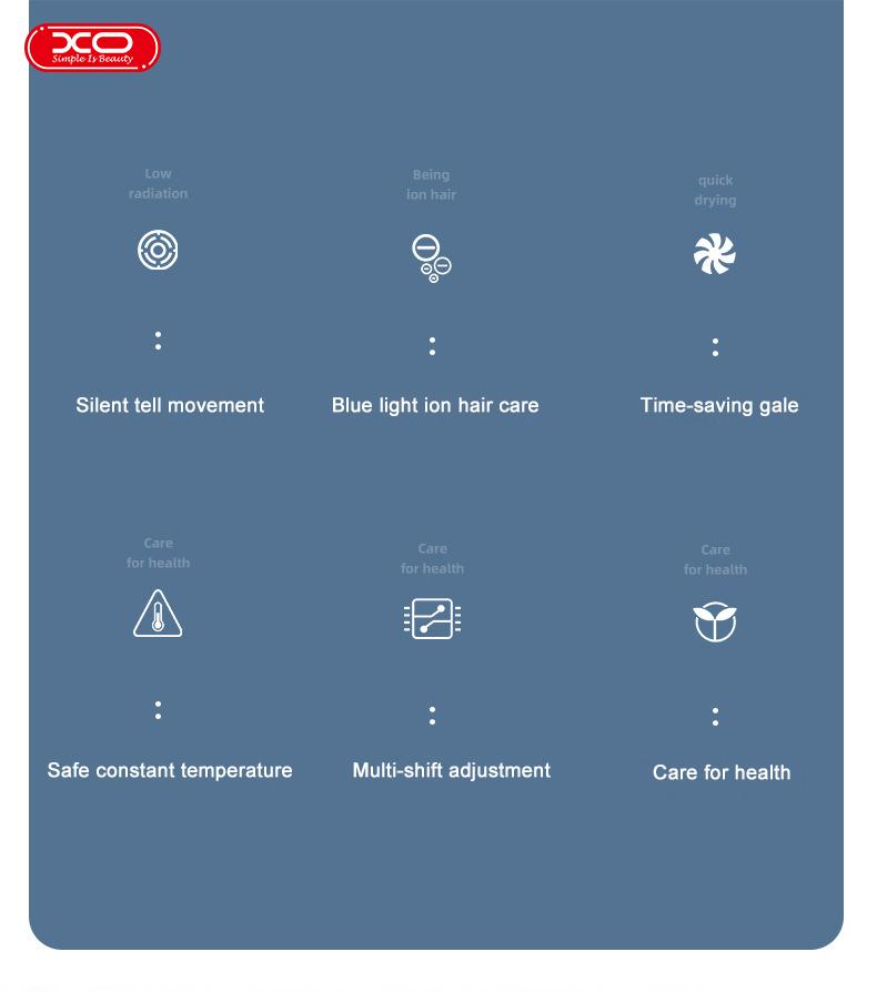 Λειτουργία στεγνωτήρα μαλλιών: σταθερός έλεγχος θερμοκρασίας + έλεγχος αέρα (προστασία υπερθέρμανσης, ισχυρός κινητήρας κατά των παρεμβολών)