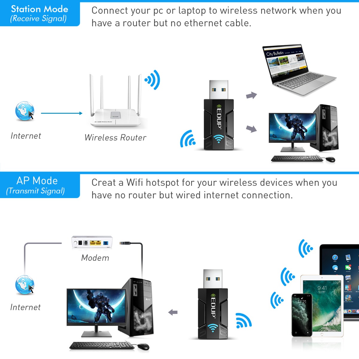 2.4GHz ~2.4835GHz 5.125GHz ~5.825GHz |