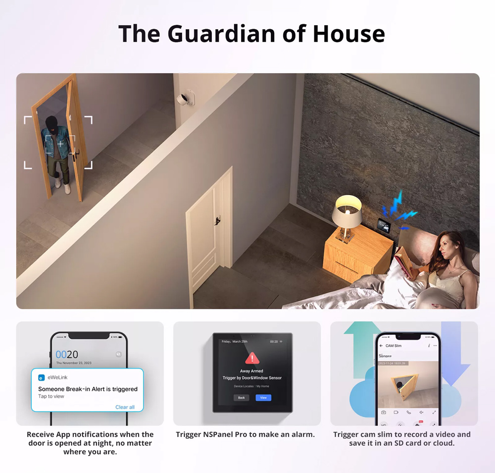 Smart μαγνητική παγίδα για πόρτα ή παράθυρο της Sonoff. Σε περίπτωση παραβίασης, ενεργοποιεί τον συναγερμό στο κεντρικό πάνελ και την καταγραφή μέσω κάμερας, ενώ παράλληλα, στέλνει ειδοποίηση στο smartphone σας μέσω της εφαρμογής eWeLink.