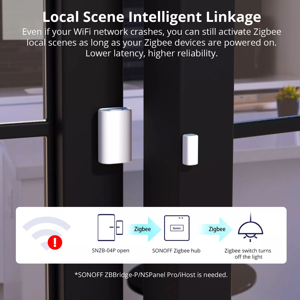 Επιπλέον, με την μαγνητική παγίδα SNZB-04P μπορείτε να δημιουργήσετε smart σκηνές, όπως για παράδειγμα το αυτόματο άνοιγμα του φωτισμού με το άνοιγμα της πόρτας.