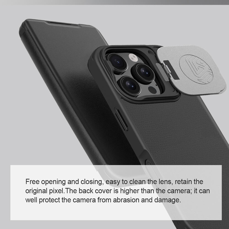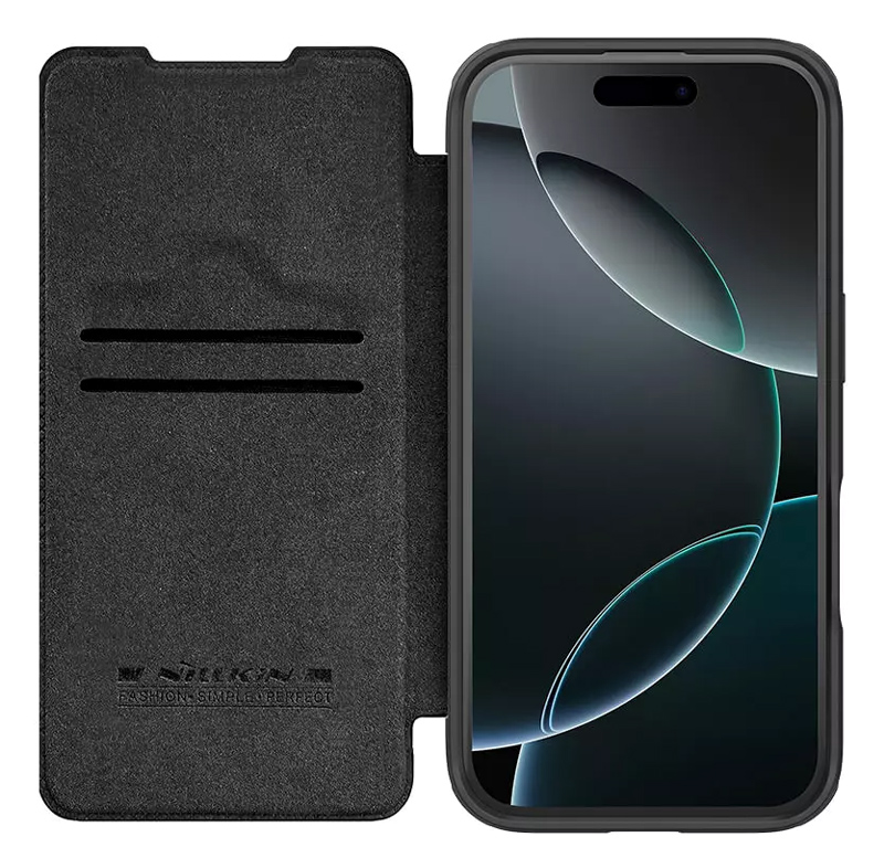 NILLKIN θήκη Qin Prop Leather για iPhone 16 Pro, δερμάτινη, μαύρη