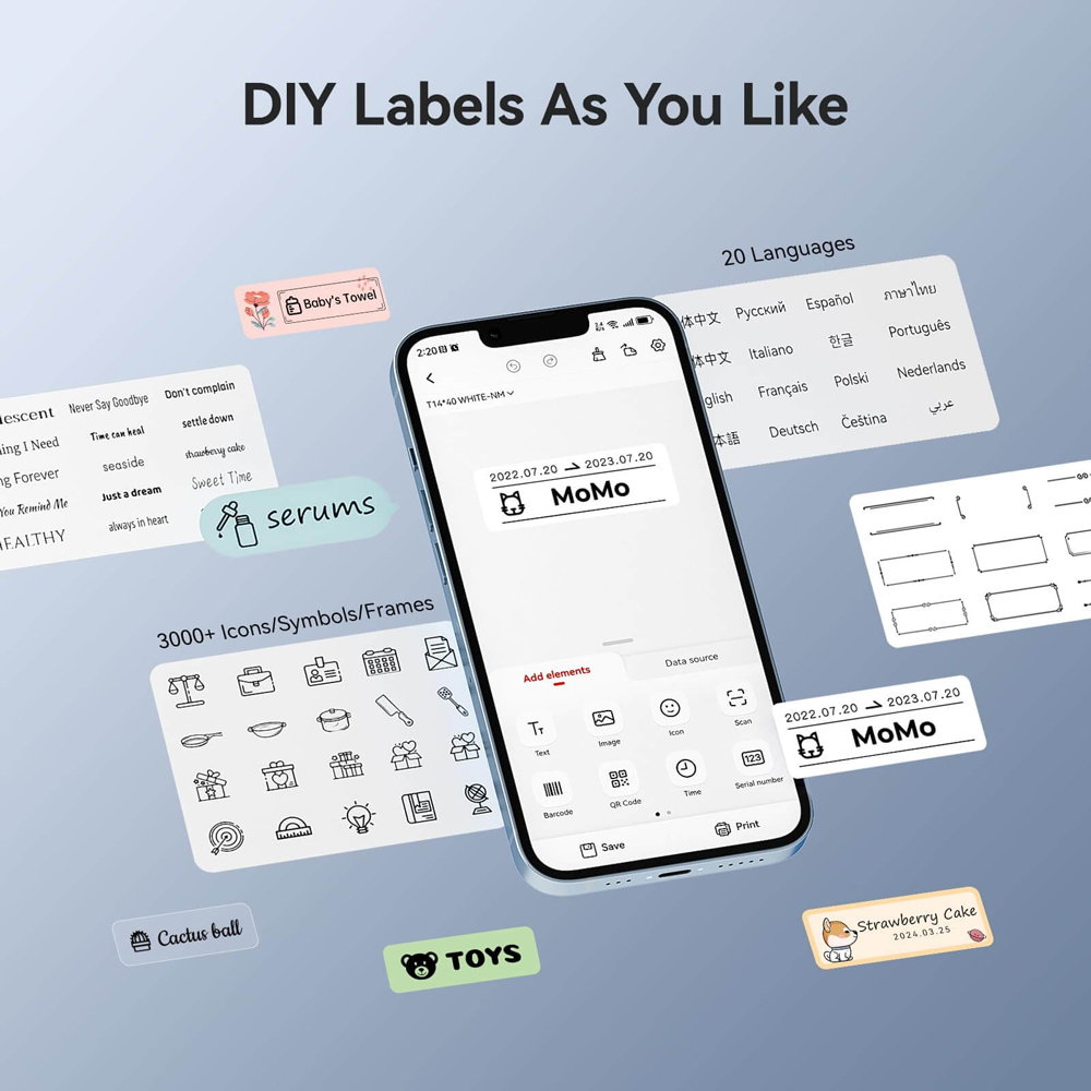 Ο θερμικός εκτυπωτής της NIIMBOT σας επιτρέπει να εκτυπώνετε αυτοκόλλητες ετικέτες τις οποίες μπορείτε να δημιουργήσετε εύκολα και γρήγορα από το smartphone σας.
