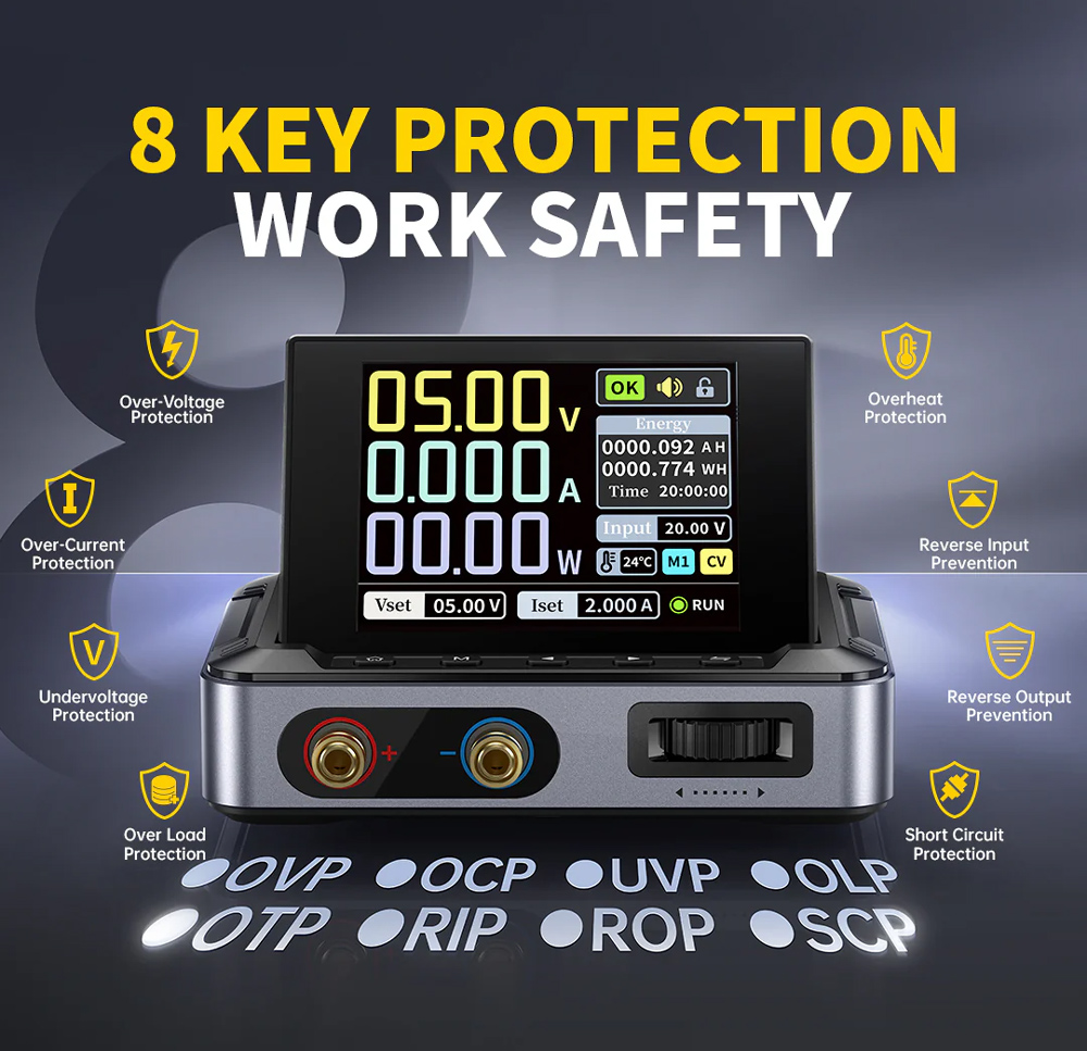 Υποστηρίζει PC, QC, και DC εισόδους με προγραμματιζόμενες εξόδους και 6 preset voltage/current ρυθμίσεις.