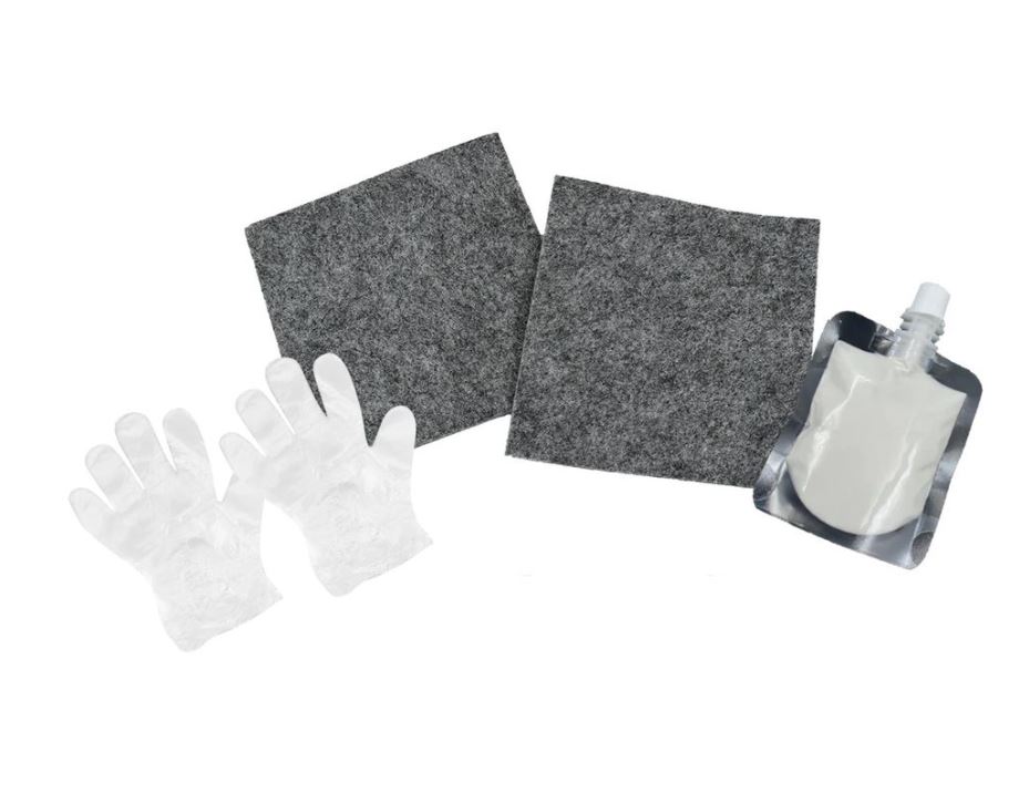 Απλώς καθαρίστε και στεγνώστε την επιφάνεια πριν τη χρήση, φορέστε τα γάντια, εφαρμόστε στο πανι το διάλυμα και περάστε το από τις γρατσουνιές. Ολοκληρώστε καθαρίζοντας την επιφάνεια με άλλο πανί.