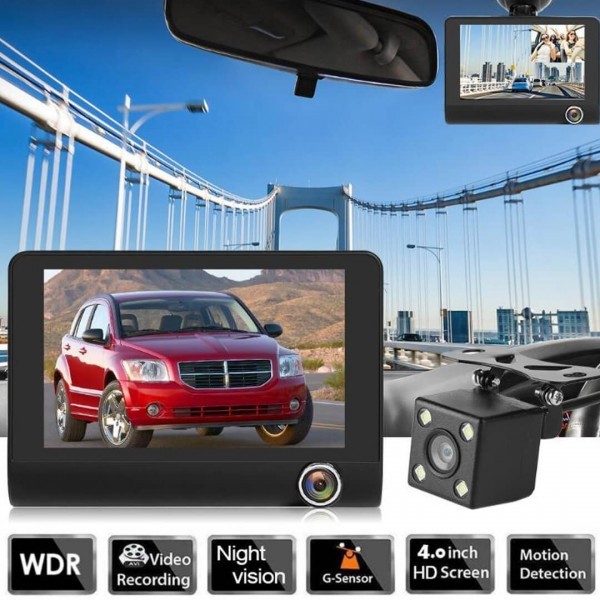 Σύστημα τριπλής καταγραφής αυτοκινήτου Full HD 1080p. με 2 κάμερες καταγραφής, κάμερα οπισθοπορείας parking, οθόνη 4", αισθητήρα