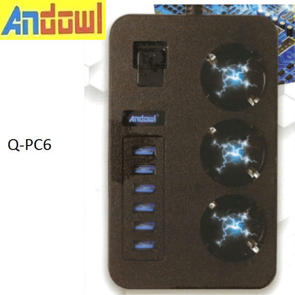 Πολύπριζο με 6 θύρες USB και 3 υποδοχές πρίζας σούκο.
