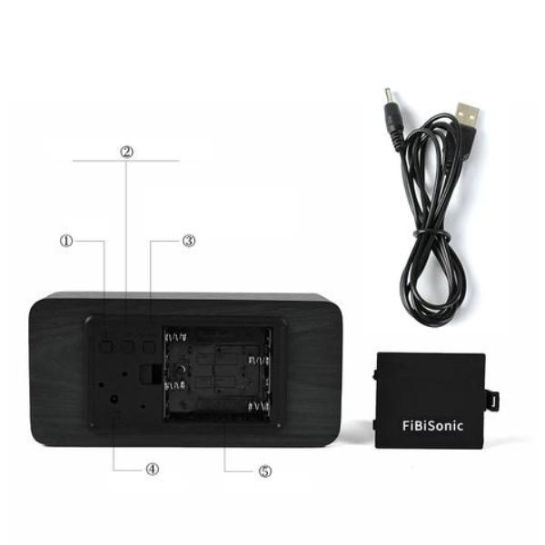 Σβηστό, φαίνεται σαν ένα απλό κομμάτι ξύλο, αλλά μόλις ενεργοποιηθεί εμφανίζονται τα ηλεκτρονικά ψηφία που δείχνουν την ώρα, την θερμοκρασία και την ημερομηνία.