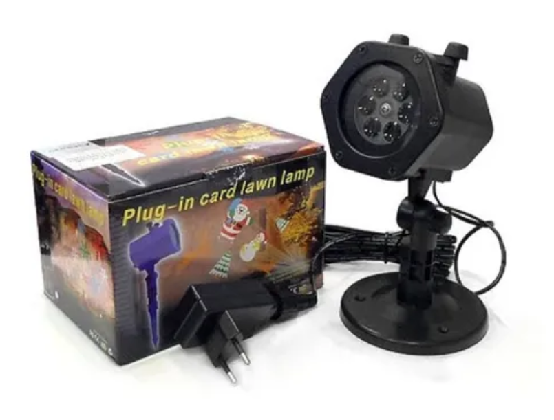 Το πακέτο περιλαμβάνει: 1 LED προβολέα κήπου, 1 προσαρμογέα ρεύματος, 12 μεταβλητές κάρτες μοτίβου, 1 στήριγμα εδάφους.