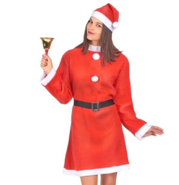 Το γυναικείο κοστούμι Άγιου Βασίλη αποτελείται από ένα φόρεμα, μια ζώνη κι ένα σκούφο.