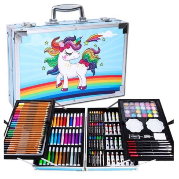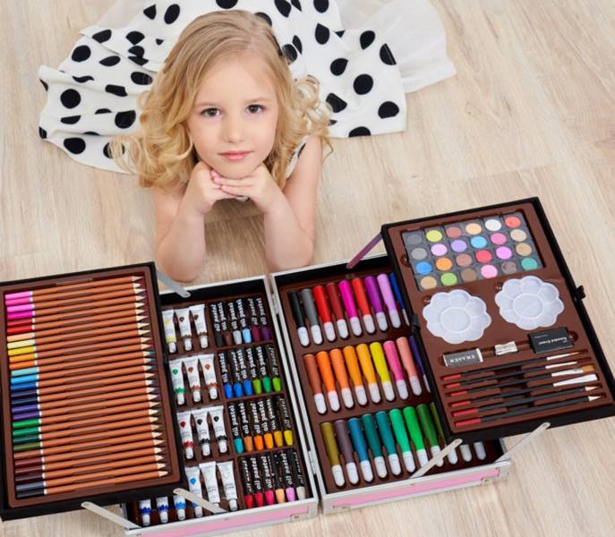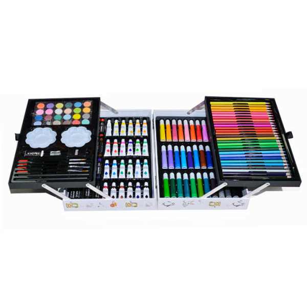 Το σετ περίεχει ξυλομπογιές, τέμπερες, νερομπογιές, παστέλ, πινέλα και άλλα απαραίτητα εργαλεία για ζωγραφική.