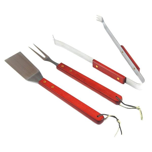 Σετ ψησταριάς 3 τεμαχίων από ανοξείδωτο ατσάλι με ανθεκτική ξύλινη λαβή.