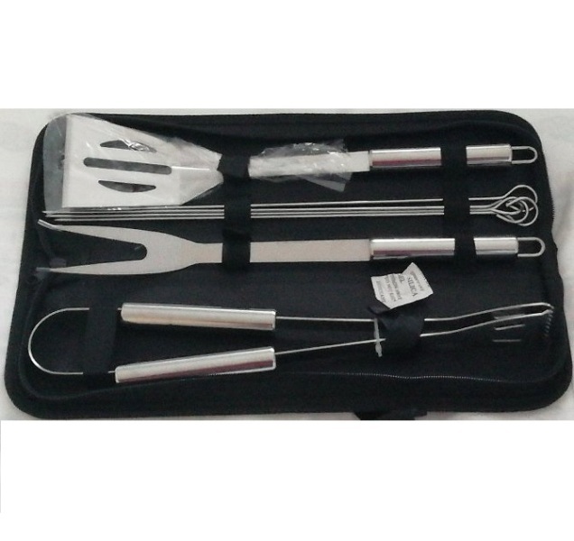 Το σετ περιλαμβάνει: 1 πιρούνα BBQ, 1 σπάτουλα, 1λαβίδα, 4 μεταλλικές σούβλες κρέατος για σουβλάκια.