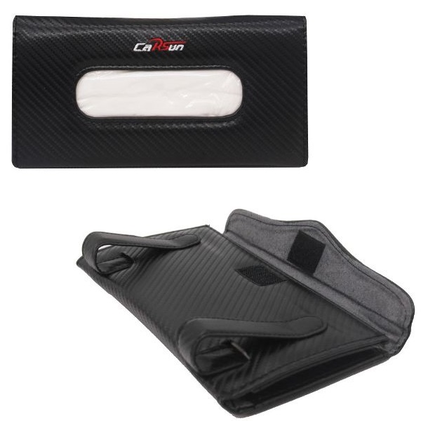 Θήκη χαρτομάντιλων με δερμάτινη εμφάνιση που τοποθετείται σταθερά στο αλεξήλιο του αυτοκινήτου σας.