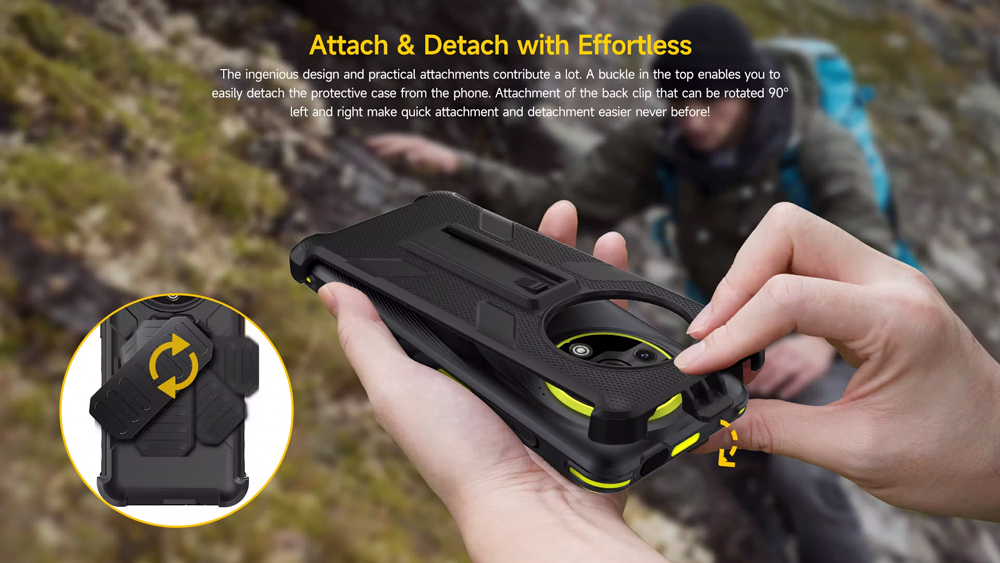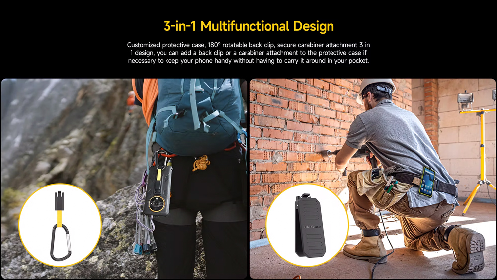 Αυτή η θήκη της ULEFONE είναι ειδικά σχεδιασμένη για τα smartphone της σειράς Armor X31. Είναι κατασκευασμένη από αντιολισθητικό και ανθεκτικό υλικό στις πτώσεις. Μαζί με την θήκη συμπεριλαμβάνονται, ένα περιστρεφόμενο κλιπ 180° που μπορεί να τοποθετηθεί σε ζώνη και ένα κλιπ με γάντζο που μπορεί να κρεμαστεί από ζώνη ή σακίδιο.
