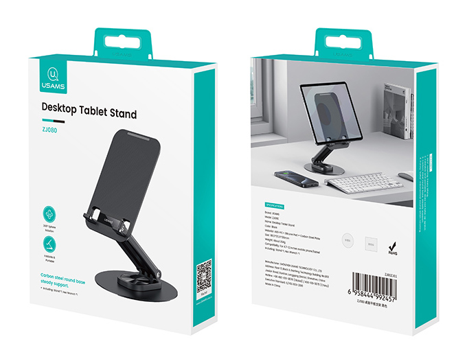USAMS επιτραπέζια βάση για tablet ZJ080 έως 12", foldable, μαύρη