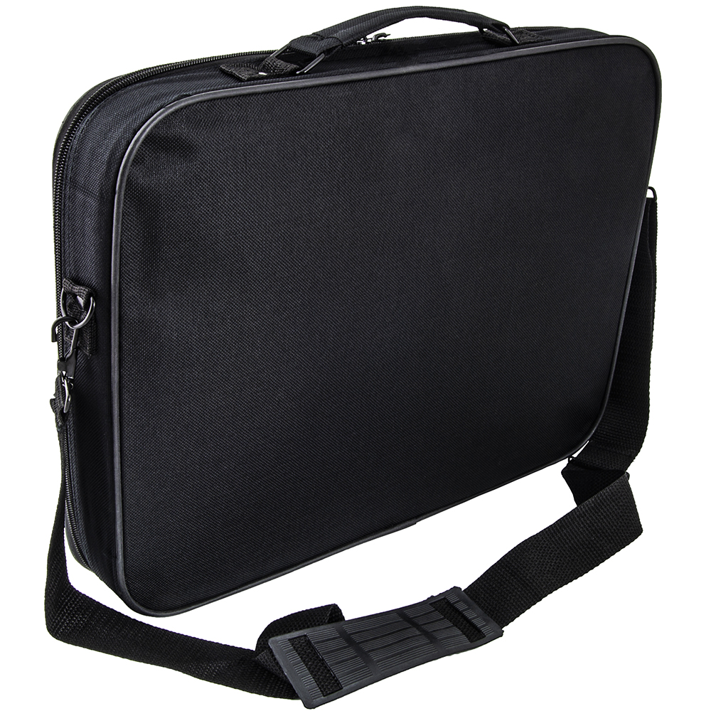 An elegant notebook bag with an abutting max. 15.6". The size of the inner chamber is adjusted by means of a sliding strip with Velcro fastening, allowing the chamber to be adapted to the dimensions of the notebook. The bag is made of high quality material. Side walls are reinforced with a metal strip, and on the inside lined with a soft layer of foam effectively protecting the notebook from bumps and scratches. The notebook compartment on each side is lined with soft materials. From the outside - at the front - the bag has a functional pocket, for example for documents. Inside the bag there is a second pocket for handy documents and a belt that additionally holds the notebook. The metal hinges of the handle and the shoulder strap guarantee high durability and reliability. The adjustable shoulder strap is fastened with very practical metal hooks, and in its central part the strap has a rubber cap that increases the wearing comfort.