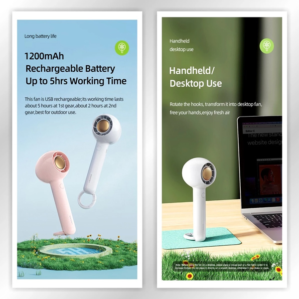 Μίνι φορητός ανεμιστήρας της Usams με 2 επίπεδα ταχύτητας του αέρα, που σας επιτρέπουν την προσαρμογή της ροής της ταχύτητας του αέρα ανάλογα με τις ανάγκες σας