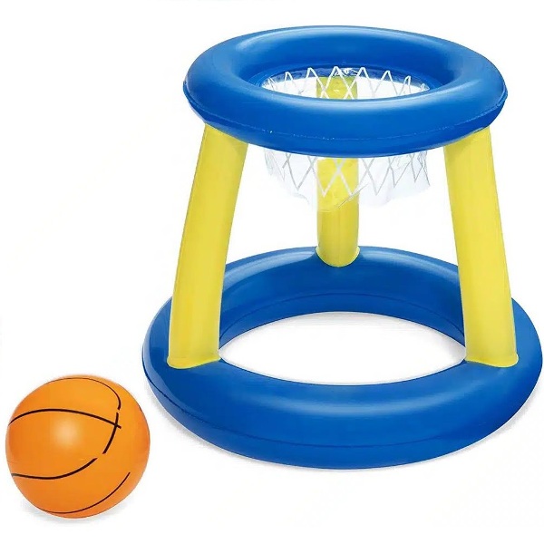 Το σετ περιλαμβάνει μια φουσκωτή μπασκέτα που επιπλέει και μια μπάλα.