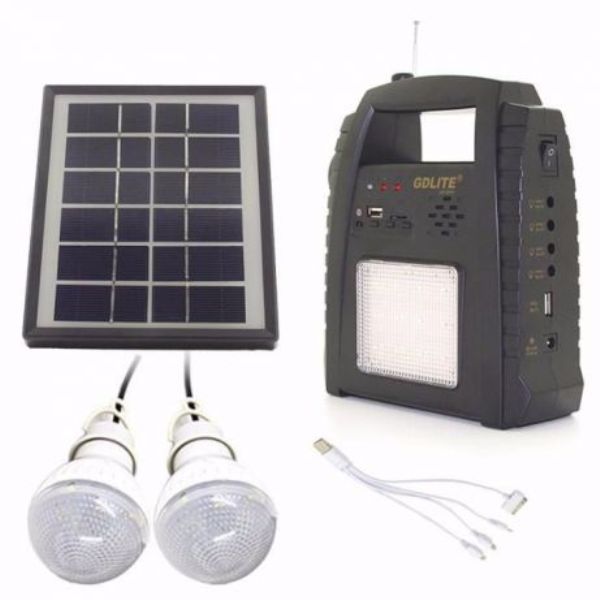Το πακέτο περιλαμβάνει: Κύριο κιβώτιο ηλιακής φόρτισης με λαμπτήρα και προβολέα LED, επαναφορτιζόμενη μπαταρία, ηλιακό πάνελ, 2 x λαμπτήρες LED, καλώδιο φόρτισης πολλαπλών συσκευών, καλώδιο φόρτισης AC.