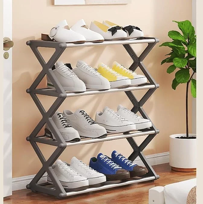 Ραφιέρα κατασκευασμένη απο πλαστικό, με μεταλικές μπάρες.