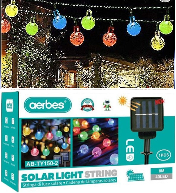 Πολύχρωμα μπαλάκια LED σε καλώδιο με ηλιακή ενέργεια.