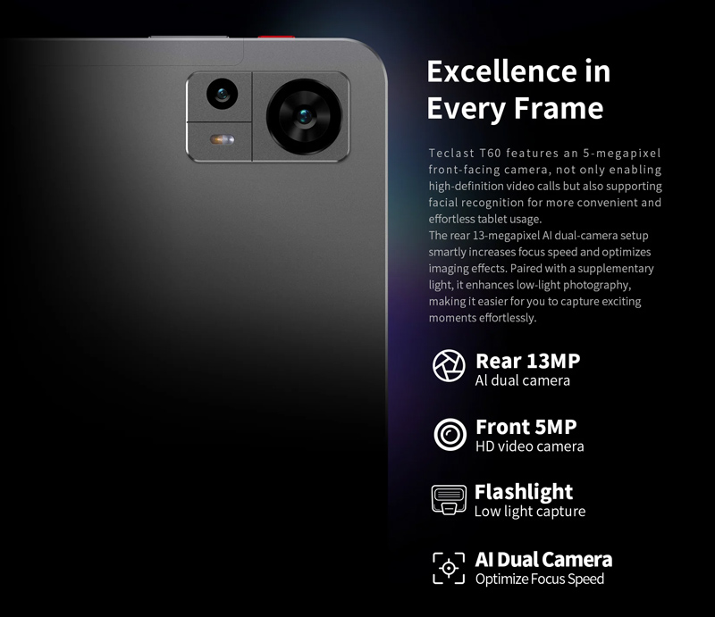 Ελαφρύ και λεπτό tablet της Teclast, με κομψό, μεταλλικό σώμα και μεγάλη οθόνη 12". Διαθέτει ισχυρό επεξεργαστή που σε συνδυασμό με το λειτουργικό Android 13, απογειώνουν την απόδοση του tablet.