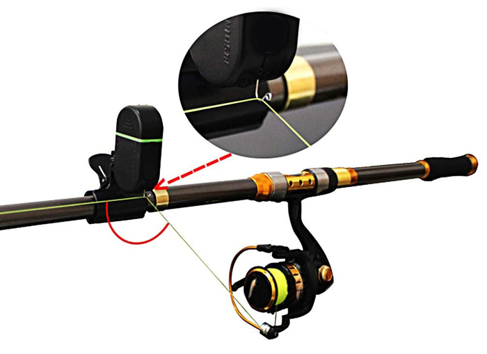 Αδιάβροχος συναγερμός ψαρέματος ο όποιος ειδοποιεί ηχητικά και οπτικά μέσω φωτισμού όταν το ψαρί τσιμπήσει το καλάμι. Τοποθετείται εύκολα πάνω στο καλάμι ψαρέματος χωρίς να προκαλεί ζημία στην πετονιά. Τροφοδοτείται από 3 μπαταρίες LR44 οι οποίες δεν συμπεριλαμβάνονται μέσα στην συσκευή.