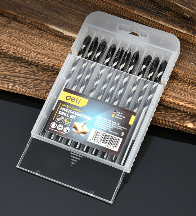 Σετ τρυπάνια της Deli κατάλληλα για χρήση σε επιφάνειες από πέτρα, μέταλλο, ξύλο, μάρμαρο κ.α. Η συσκευασία περιλαμβάνει 10 τρυπάνια.